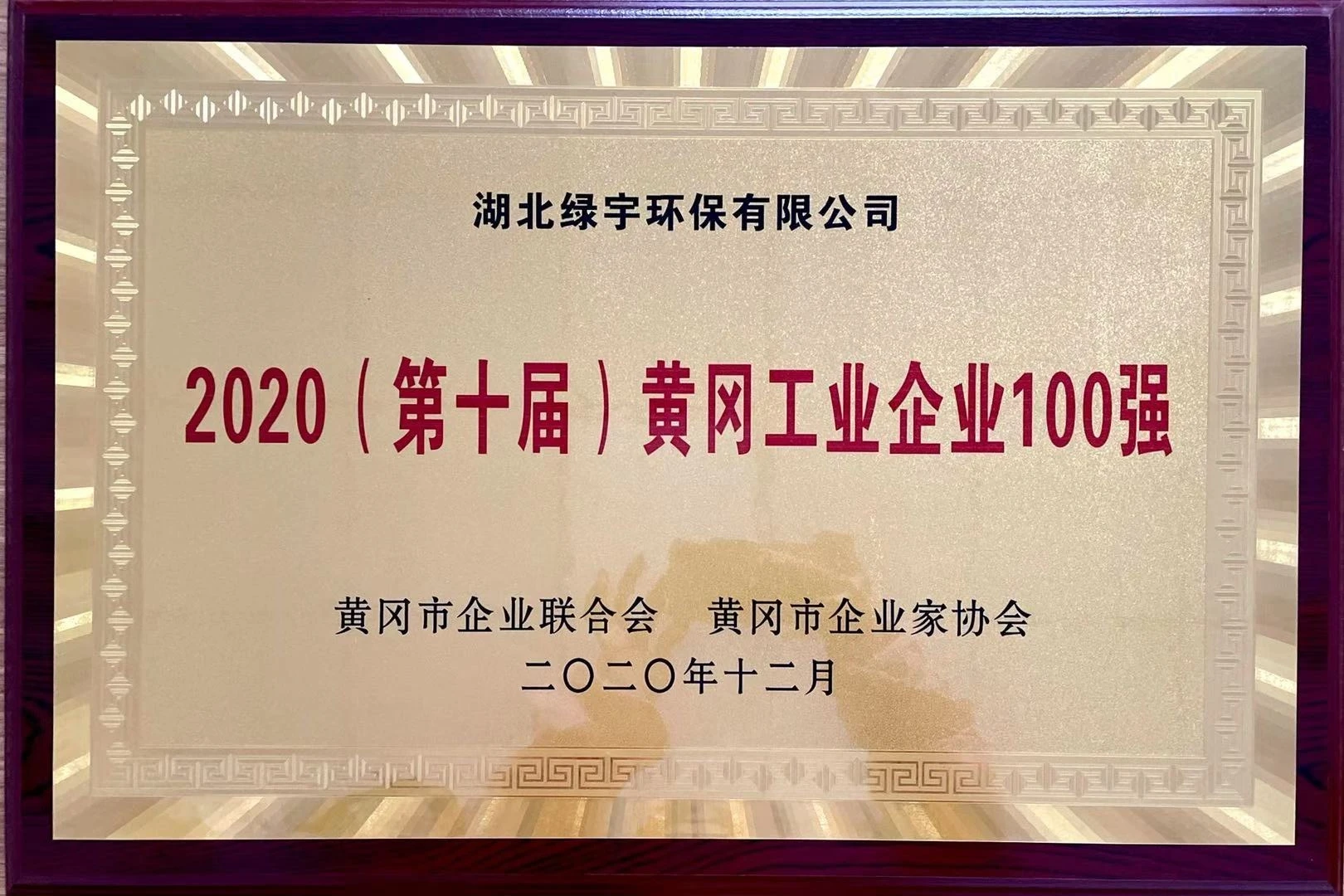 2020年12月14日,2020年黄冈“企业家活动日”暨第十届黄冈市工业企业100强发布大会在罗田县湖北宏源药业科技股份有限公司职工活动中心隆重举行,湖北绿宇环保有限公司参加发布大会并获得“2020(第十届)黄冈市工业企业100强”称号。