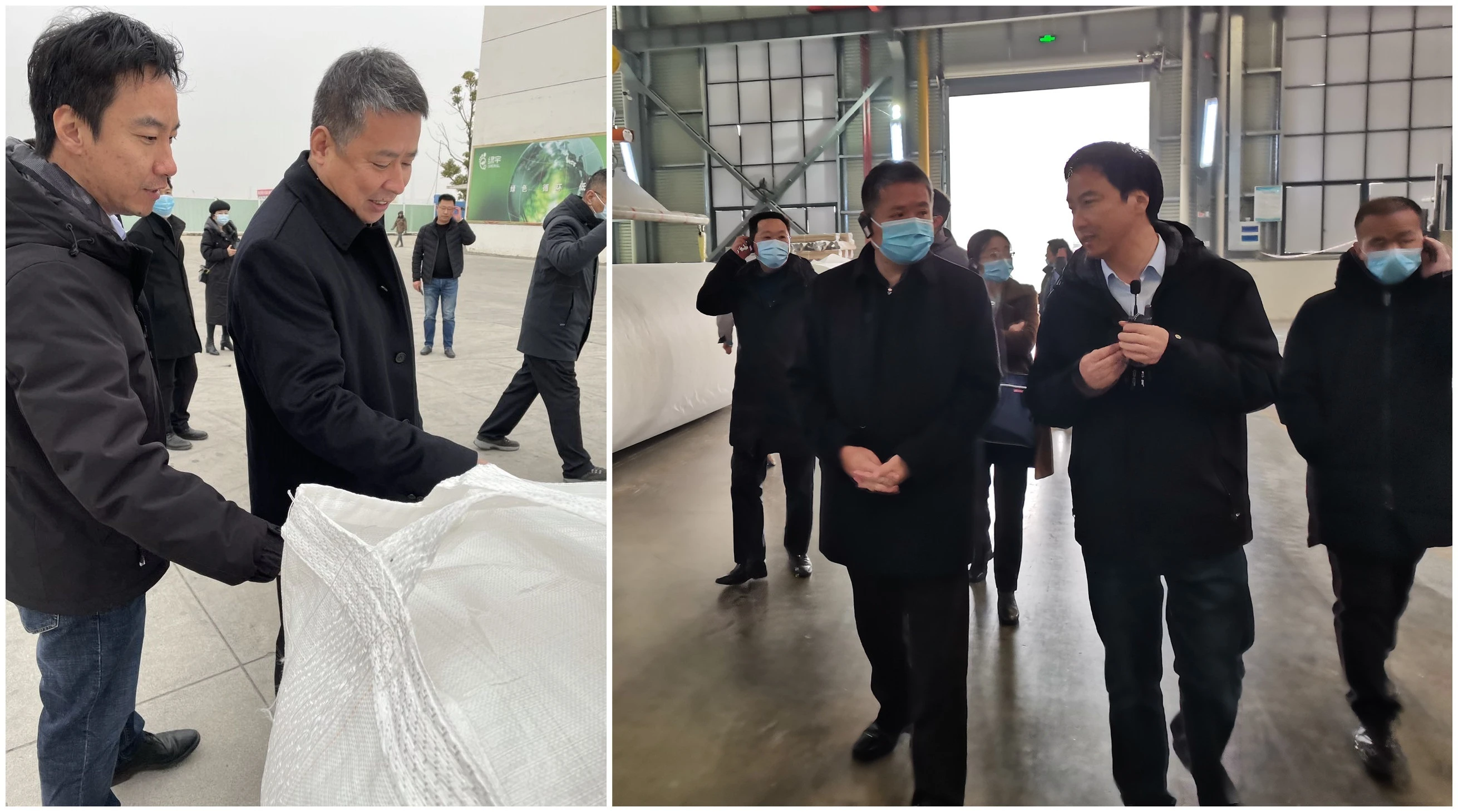 绿宇环保执行董事姜传忠陪同参观了绿宇环保聚合、纺粘及短纤生产车间,并详细介绍了绿宇生产车间先进的生产工艺和公司历史沿革。